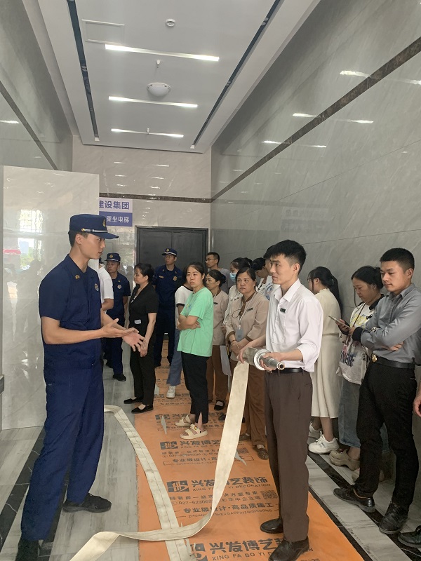 在生動(dòng)有趣的消防安全培訓(xùn)結(jié)束后,消防支隊(duì)專(zhuān)家與集團(tuán)全體員工到大廈一樓進(jìn)行實(shí)地演練,消防支隊(duì)專(zhuān)家們逐一介紹滅火器材和消防水帶的使用方法及相關(guān)注意事項(xiàng)。集團(tuán)員工在認(rèn)真聽(tīng)完介紹后主動(dòng)實(shí)踐,將理論知識(shí)內(nèi)化于心,實(shí)踐于行。