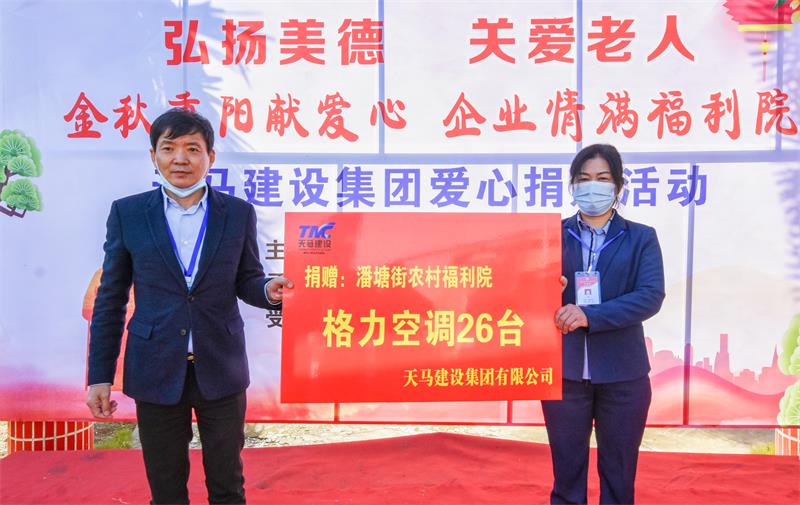 潘塘街福利院是一家公辦養(yǎng)老機(jī)構(gòu),目前供養(yǎng)了40多名三無(wú)人員、殘疾老人。為了改善福利院的生活環(huán)境,天馬建設(shè)集團(tuán)采購(gòu)了26臺(tái)格力空調(diào)、20臺(tái)取暖器、40床嶄新的棉被送到福利院,讓這里的老人安心過(guò)冬,受到了全體老人的一致稱贊?!熬啪胖仃?yáng)節(jié),濃濃敬老情!我代表潘塘福利院全體老人感謝天馬集團(tuán)為我們捐贈(zèng)的空調(diào),讓我們的老人冬暖夏涼,給我們精神上帶來(lái)更大的慰藉”。面對(duì)愛(ài)心企業(yè)的善舉,福利院院長(zhǎng)唐家菊高興不已。