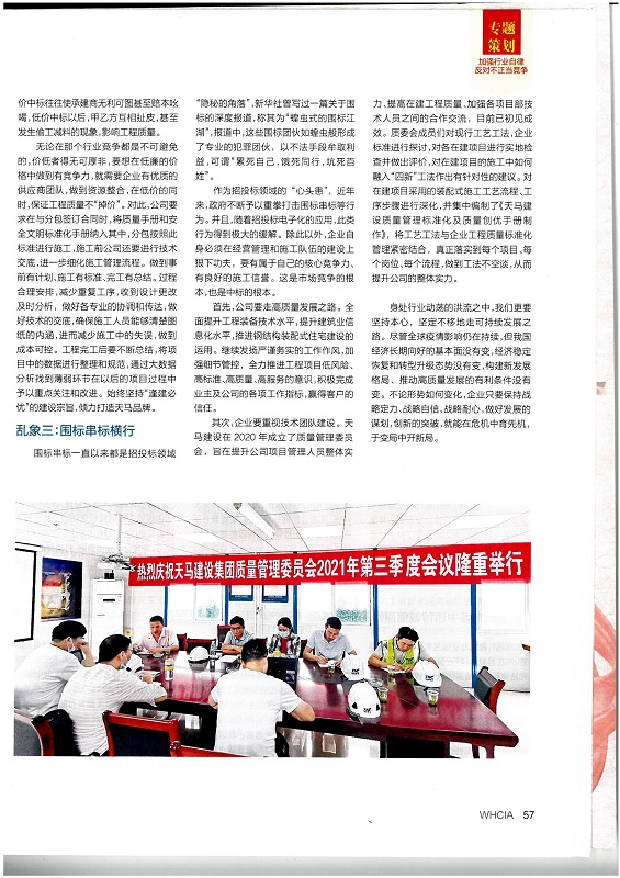其次,企業(yè)要重視技術(shù)團(tuán)隊(duì)建設(shè)。天馬建設(shè)在2020年成立了質(zhì)量管理委員會,旨在提升公司項(xiàng)目管理人員整體實(shí)力、提高在建工程質(zhì)量、加強(qiáng)各項(xiàng)目部技術(shù)人員之間的合作交流,目前已初見成效。質(zhì)委會成員們對現(xiàn)行工藝工法,企業(yè)標(biāo)準(zhǔn)進(jìn)行探討,對各在建項(xiàng)目進(jìn)行實(shí)地檢查并做出評價(jià),對在建項(xiàng)目的施工中如何融入“四新”工法作出有針對性的建議。對在建項(xiàng)目采用的裝配式施工工藝流程、工序步驟進(jìn)行深化,并集中編制了《天馬建設(shè)質(zhì)量管理標(biāo)準(zhǔn)化及質(zhì)量創(chuàng)優(yōu)手冊制作》,將工藝工法與企業(yè)工程質(zhì)量標(biāo)準(zhǔn)化管理緊密結(jié)合,真正落實(shí)到每個(gè)項(xiàng)目、每個(gè)崗位、每個(gè)流程,做到工法不空談,從而提升公司的整體實(shí)力。